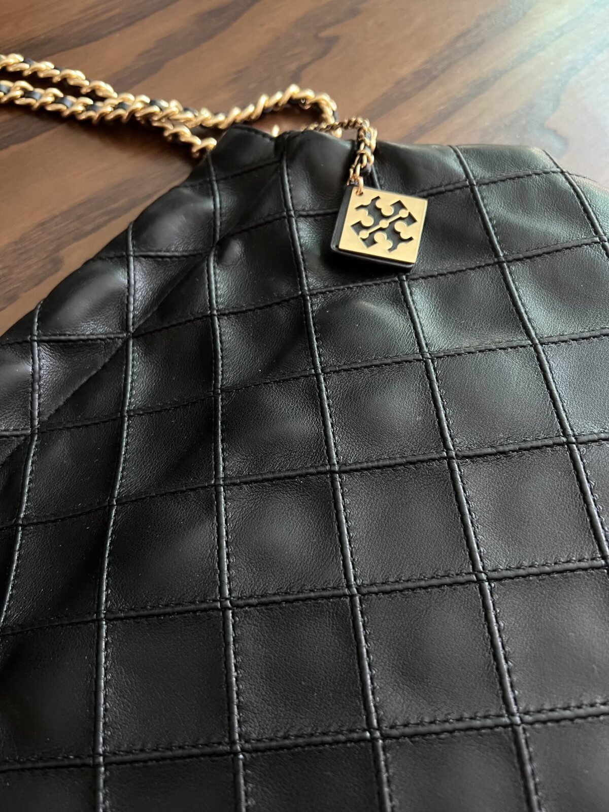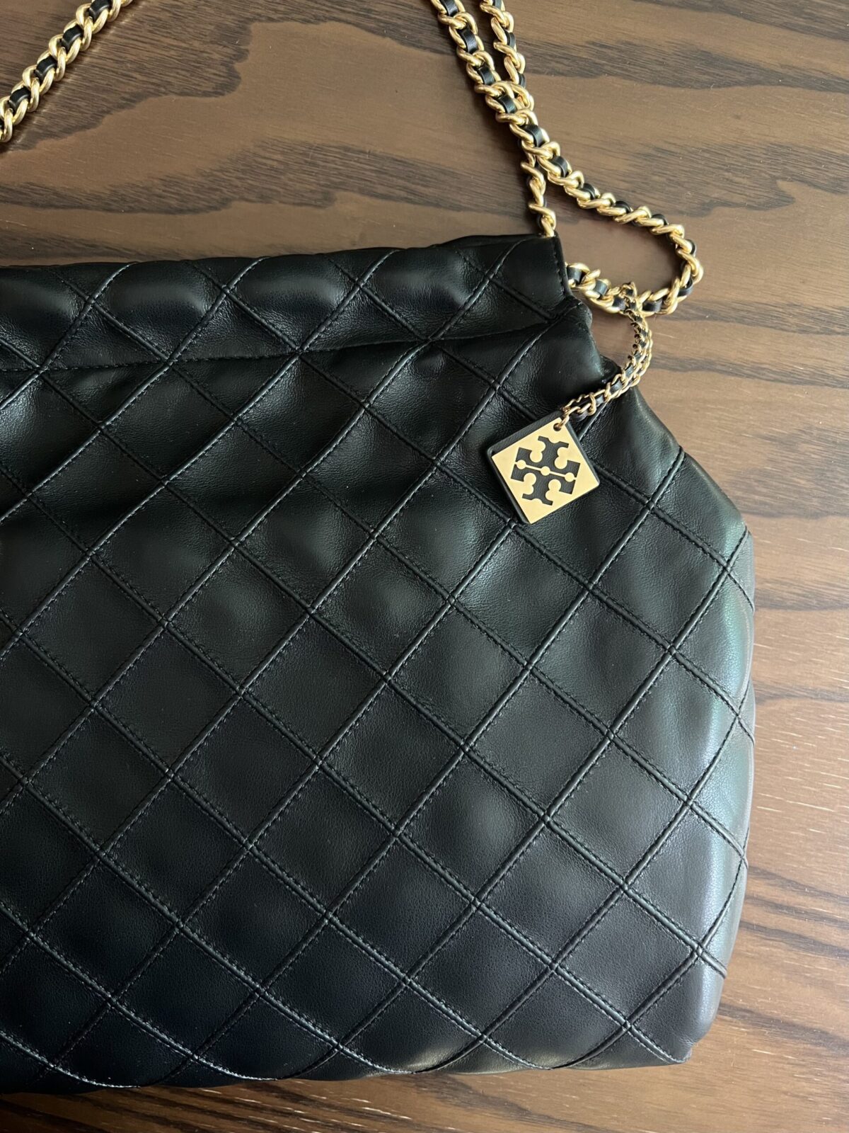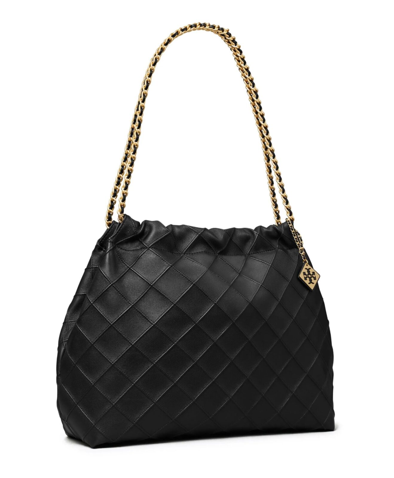 El bolso con cordón Fleming está hecho de cuero extremadamente suave y presenta detalles en forma de diamante.